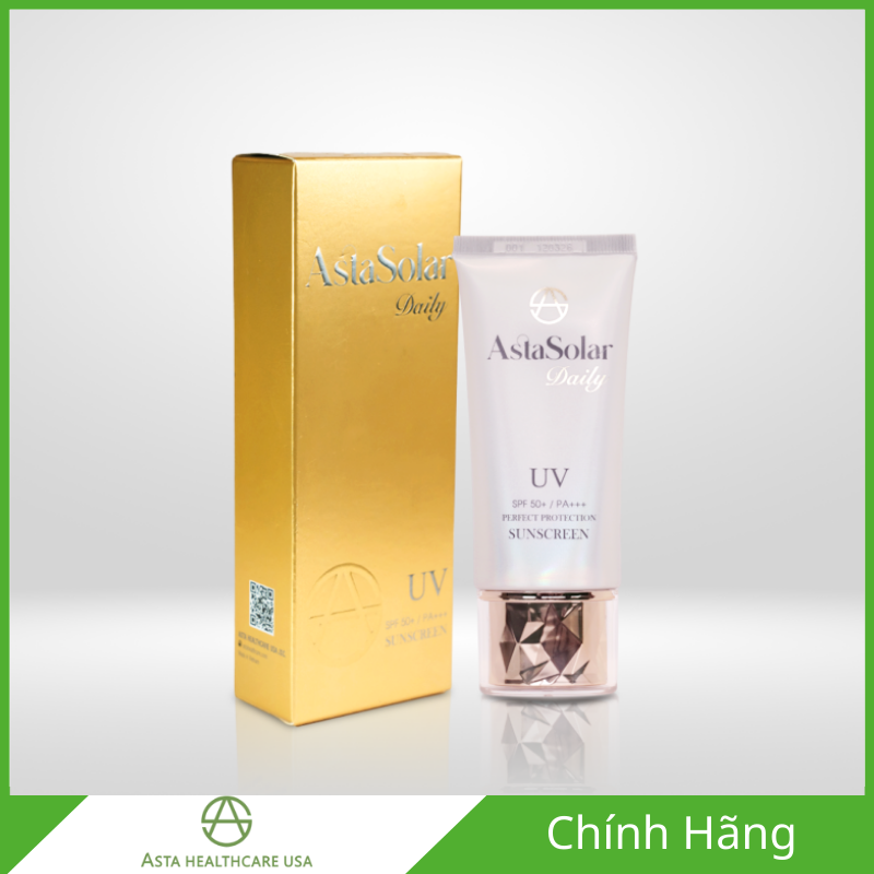 AstaSolar Daily là kem chống nắng sử dụng hằng ngày do ASTA Healthcare USA nghiên cứu và phát triển, ứng dụng công nghệ chống nắng nano vật lý lai hóa học giúp bảo vệ da toàn diện trước tia UVA và UVB. Không chỉ chống nắng, AstaSolar Daily còn hỗ trợ dưỡng ẩm, làm mịn da, cải thiện độ đàn hồi và hạn chế các dấu hiệu lão hóa nhờ sự kết hợp của Hyaluronic Acid phân tử nhỏ, Niacinamide, Panthenol cùng các chiết xuất sinh học cao cấp. Sản phẩm phù hợp cho cả nam và nữ, sử dụng an toàn mỗi ngày cho da mặt và toàn thân.