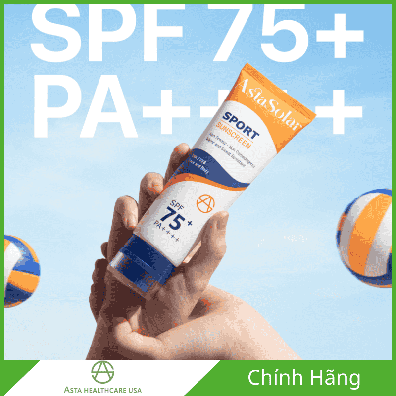 AstaSolar Sport là kem chống nắng chỉ số cao SPF 75+ PA++++ do ASTA Healthcare USA nghiên cứu và phát triển, dành riêng cho các hoạt động ngoài trời và thể thao cường độ cao. Sản phẩm ứng dụng công nghệ chống nắng vật lý lai hóa học giúp bảo vệ da toàn diện trước tia UVA và UVB, đồng thời có khả năng chống nước và mồ hôi hiệu quả. Bên cạnh khả năng chống nắng vượt trội, AstaSolar Sport còn hỗ trợ dưỡng ẩm, làm dịu và phục hồi da nhờ sự kết hợp của Hyaluronic Acid phân tử nhỏ, dầu hạt mù u cùng các chiết xuất sinh học cao cấp, giúp da luôn mịn màng và khỏe mạnh dưới nắng.